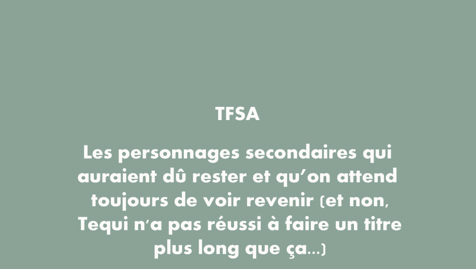 Pour ne pas changer, je me suis contenté de cinq séries et d’un seul personnage au sein de celles-ci, même si vous allez voir que parfois, ce n’était pas évident de se contenter d’un seul nom ! Je ne sais pas trop s’il y a vraiment des spoilers dedans, mais par précaution, je vous mets l’alerte avant de commencer. À vos risques et périls passé cette ligne d’avertissement 😉