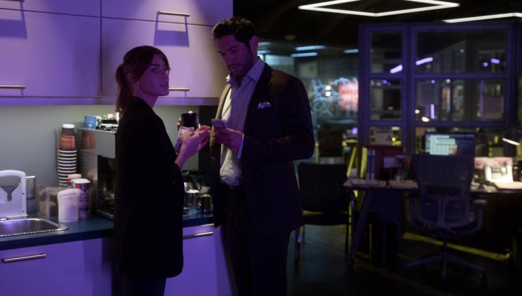 Comme chaque fois qu’un personnage a un cas de conscience, Chloé se rend aussitôt chez Linda. Cela fait plaisir de retrouver Linda dans son rôle de psy où elle excelle bien plus que dans celui de maman angoissée. Elle apprend avec étonnement la nouvelle position de Lucifer sur l’honnêteté, mais c’est une scène plutôt marrante qui commence à nous mettre Chloé dans la peau de Lucifer. Oui, Linda donne de bons conseils à Chloé, mais tout ce que notre détective retient, c’est qu’elle doit à présent rappeler à Lucifer ce qu’il aimait tant sur Terre.