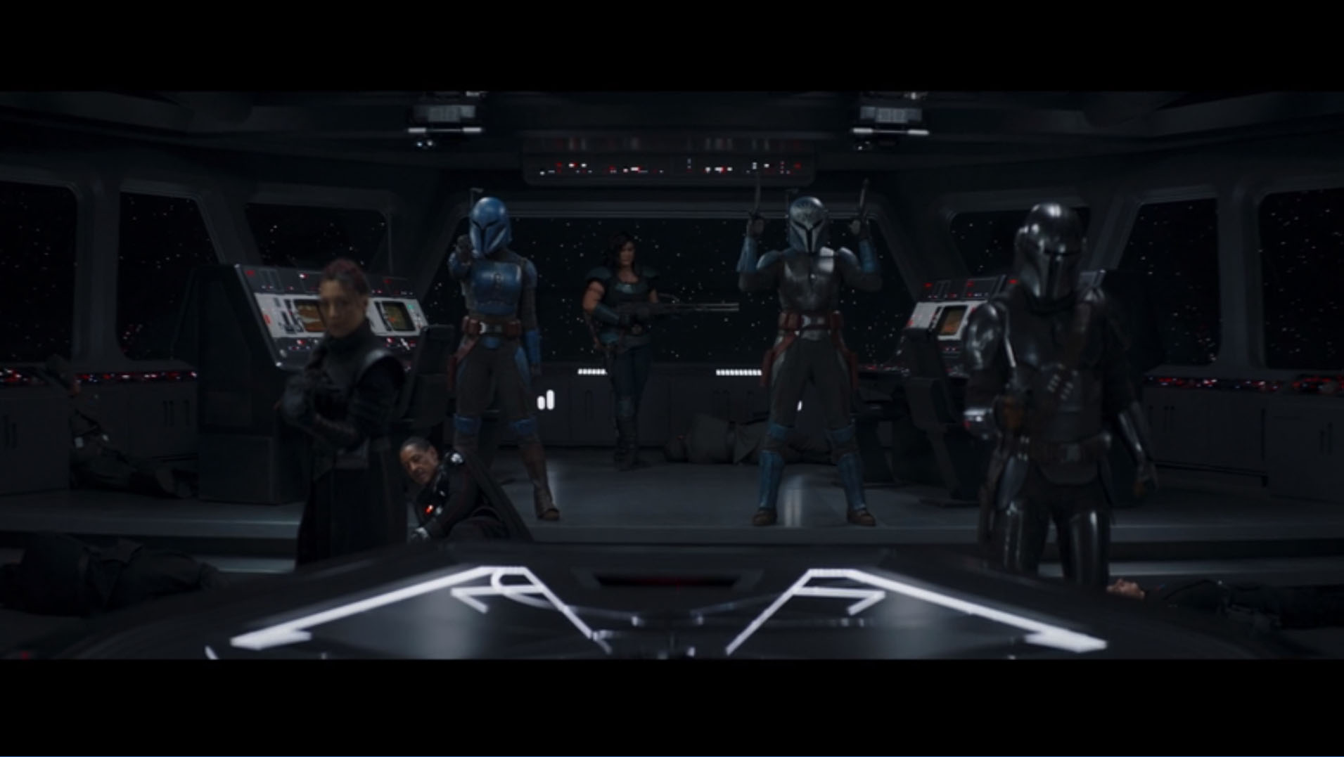 Le plan mis en place est assez simple : Bo-Katan, son bras-droit, Cara et Fennec pénètrent sans trop de mal dans le vaisseau de Gideon en prétextant être de sa flotte et être attaquées par un vaisseau ennemi, piloté par Boba Fett. Le Mandalorian ? Il est planqué dans le vaisseau des femmes. Celles-ci débarquent dans le hangar d’atterrissage où elles ont posé sans permission le vaisseau pour mieux s’attaquer aux Storm Troopers.