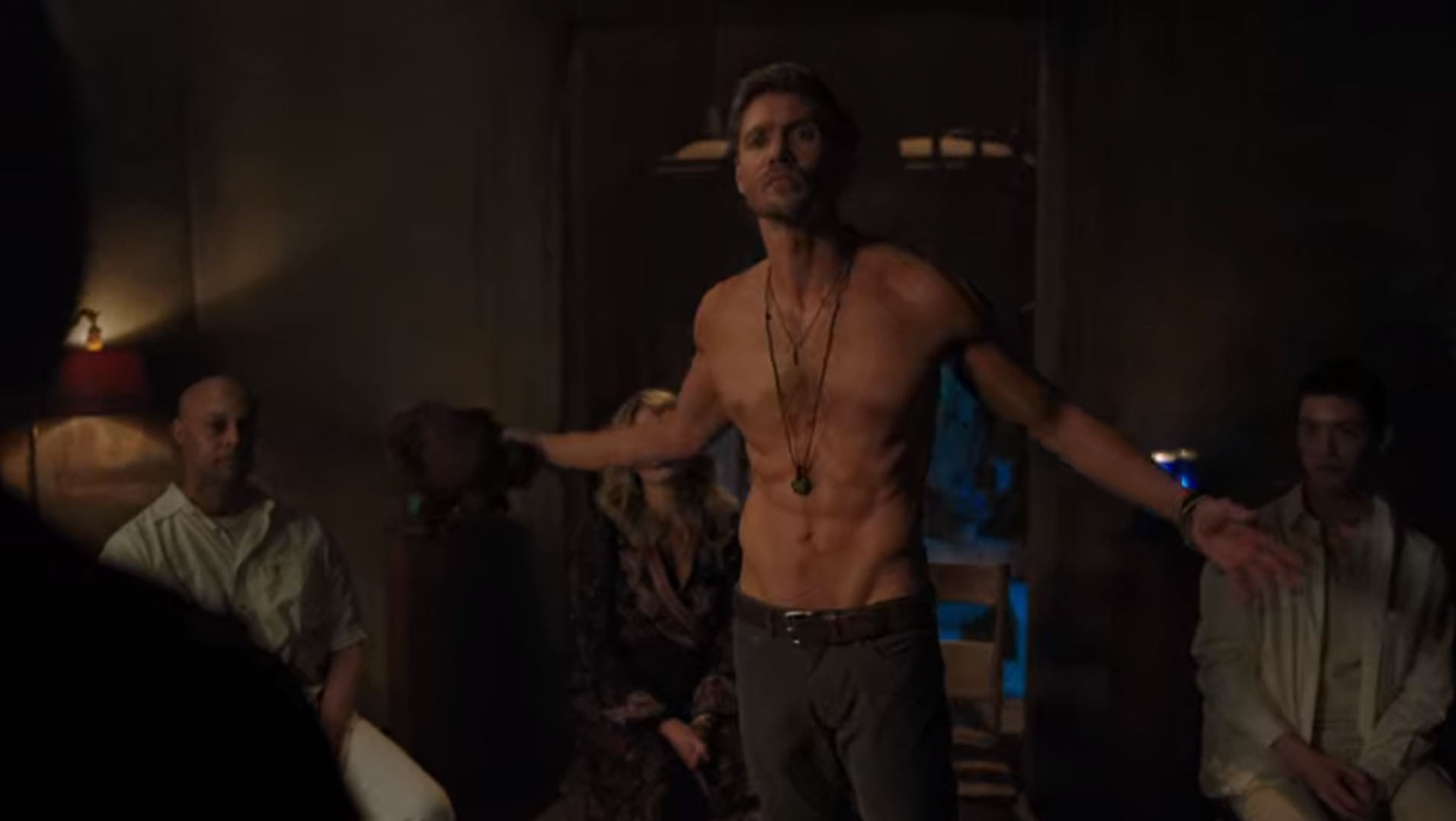 Dès qu’il est question de ne plus voir Jason dans sa petite salle surprise, Cheryl change d’avis. Je suis triste pour elle… mais ça arrange Betty et Jug qui font changer le thème. Ces deux-là sont toujours ensemble et dans une quête anti-Ferme. C’est juste une excuse pour voir Chad Michael Murray torse nu, cela dit, et wow, il a encore du game cet acteur, c’est hallucinant. Faut se laisser aller en vieillissant, merde.