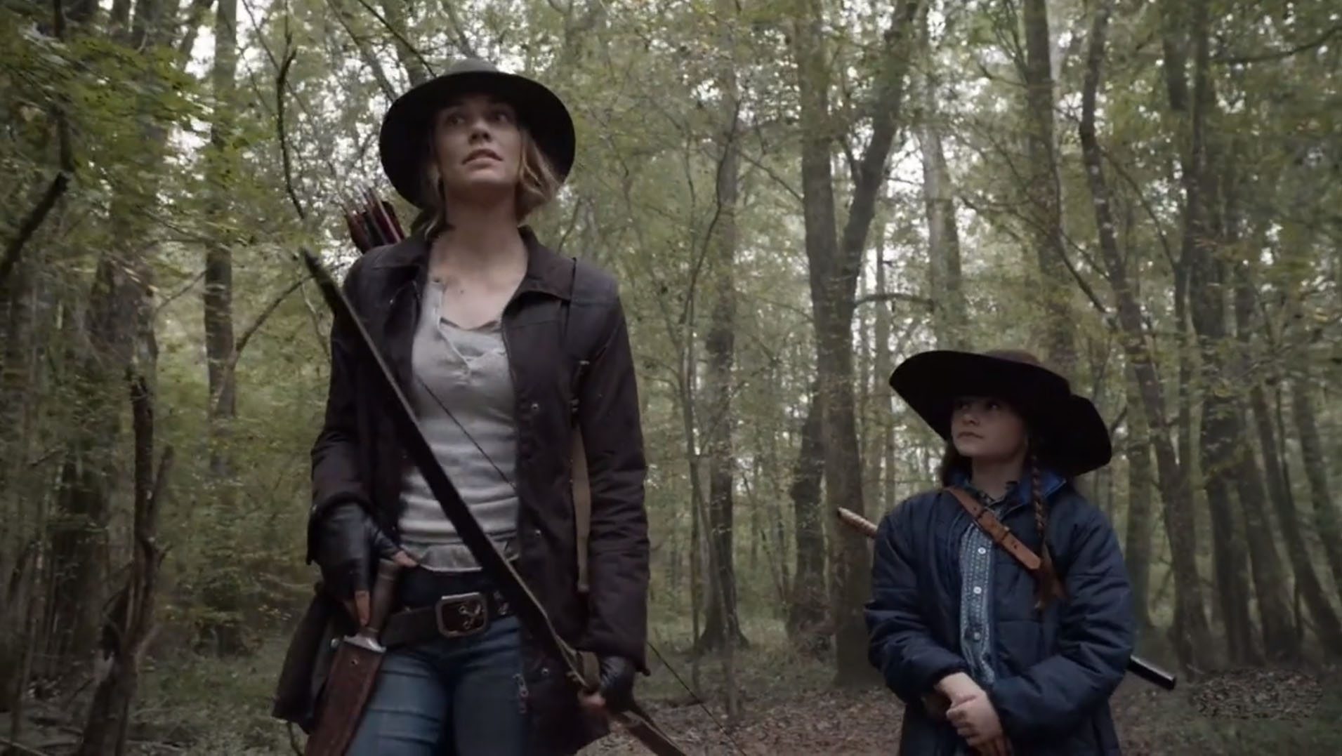 Ce n’est toutefois pas le cas : on enchaîne sur Carol et Daryl faisant un point sur la situation et découvrant les hommes de Maggie, qui leur présente Elijah et Cole. Malheureusement, ceux-ci ont un problème : ils ont perdu leur village récemment et elle compte désormais les amener à Hilltop pour les aider. Mauvais plan. Maggie découvre ainsi que Hilltop n’est plus. Effectivement, la bataille de la fin de saison (qui n’en est plus une, donc) n’a laissé que peu de chance à ce refuge. Bien sûr, Carol lui explique comme elle peut que c’est pour faire face aux Chuchoteurs et à Alpha qu’elle a eu besoin de libérer Negan.