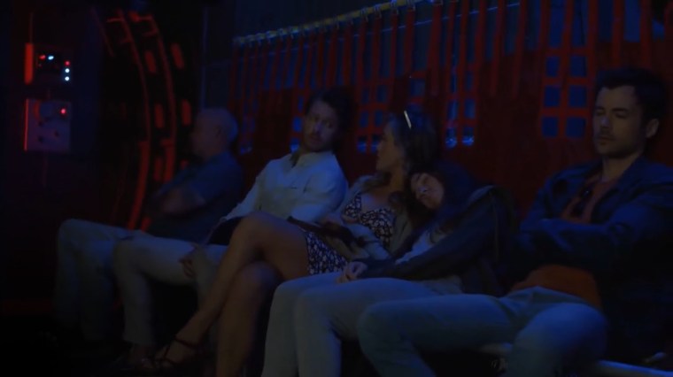 On retrouve bien vite Zeke, aussi, et lui, il profite à fond de sa lune de miel, pas comme sa femme. Il n’a plus de vision des Appels en effet, et ça l’aide bien à être tranquille, même si sa femme s’agite régulièrement. Ah, et sinon, ils sont en train de bronzer, ça me fait un point du Bingo Séries qui me manquait vraiment beaucoup. Bon, après, c’est la fin de journée, ils n’ont plus beaucoup de soleil sur eux et, vraiment, ils me donnent froid ces personnages. Et la lumière est déconnante dans toute la scène, variant selon les plans. Ils auraient pu tourner en plusieurs jours…
