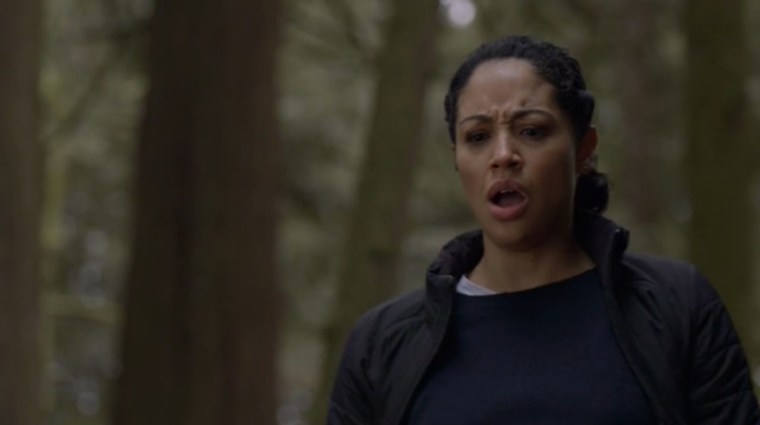 Vraiment, cet espionnage permanent entre eux, j’ai hâte que ça se termine, mais je le trouve intéressant malgré tout. Bon, bien sûr, une fois que ceci est mis de côté, les personnages sont envoyés sur la scène de crime de début d’épisode, où ils découvrent que les cadavres squelettiques sont ceux de personnes âgées. Elles ont probablement été emmenées là par un groupe d’adolescents, mais il reste à comprendre pourquoi. Peut-être que le champ électromagnétique autour des cadavres, suffisamment puissant pour charger des portables en pleine forêt, explique cela, non ? Bon, non, et c’est pour ça que je ne suis pas enquêteur.