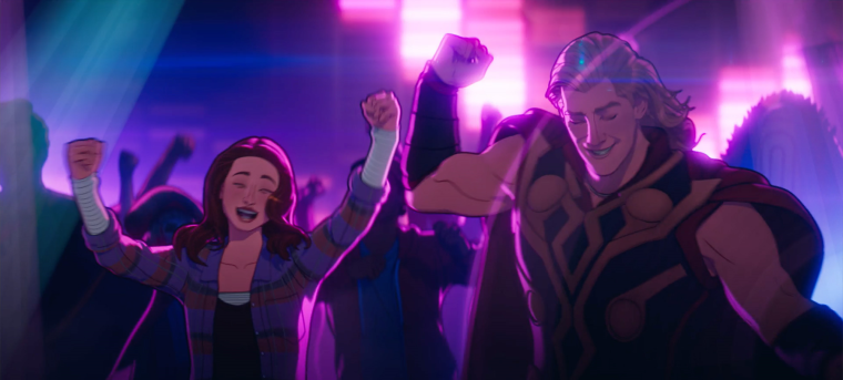L’épisode promet clairement de revisiter toute l’histoire de Thor sans la moindre existence de Loki dans la vie de son grand-frère, et ça change absolument tout. En effet, comme le Watcher nous l’explique rapidement, ce qui fait un héros, ce n’est pas tant ses actes héroïques, mais bien les liens avec ses proches. Sans son frère pour le responsabiliser bien malgré lui, Thor s’avère donc être… un gros fêtard.
