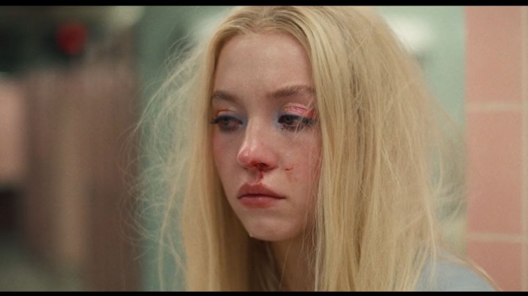 C’est une très jolie scène… et l’on découvre qu’il ne s’agit pas du lendemain de la pièce, mais de la pièce elle-même : Lexi termine sa pièce sur la déclaration que Rue lui manque –et sur une standing ovation entendue jusque dans les toilettes du lycée. Dans celles-ci, on retrouve une Cassie qui saigne du nez, une Maddy qui saigne du pied (sans avoir un seul ongle manucuré cassé ??) et Kat qui assiste à ce long silence entre les amies. Si elles ne sont plus meilleures amies, Cassie se confie tout de même à Maddy sur la rupture entre elle et Nate, permettant à Maddy de lui assurer que ce n’est que le début. Outch.