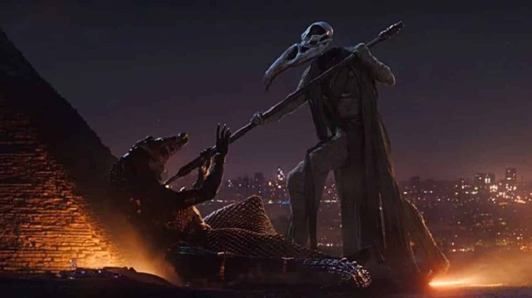 C’est le moment que Steven et Marc choisissent pour arriver : ils s’en prennent aussitôt à Harrow dans une jolie scène d’effets spéciaux, alors que le combat entre Ammit et Khonshu reprend. Le duel entre les dieux est ancestral et s’appuie sur une différence d’opinion majeure. Ammit cherche encore à la comprendre, en vain apparemment. Elle espère que Khonshu pourra s’allier à elle, surtout qu’il est sur le point de perdre face à elle.
