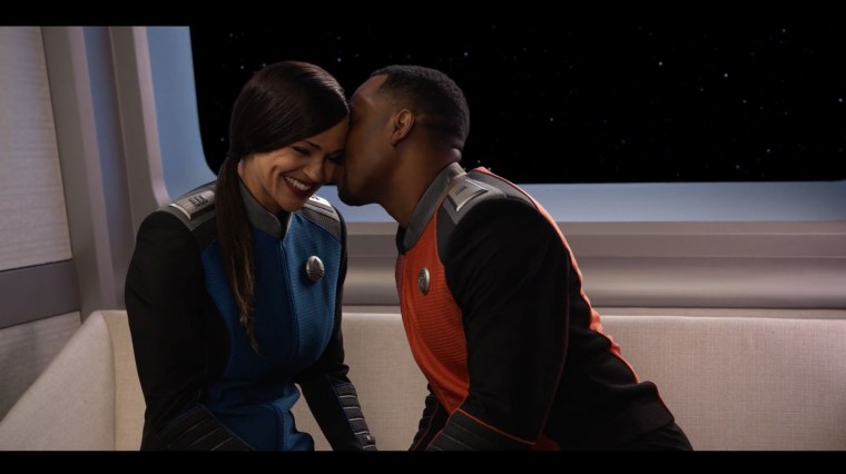 A bord de l’Orville, John et Claire sont incroyablement intéressés par les recherches de Villka, mais l’essentiel est que cette dernière envisage que sa trouvaille scientifique puisse restaurer la paix. Malgré tout, John est préoccupé par d’autres affaires à ce stade : il doit abandonner son poste pour le laisser à Charlie avec toutes les explications nécessaires et il doit surtout parler avec Talla.