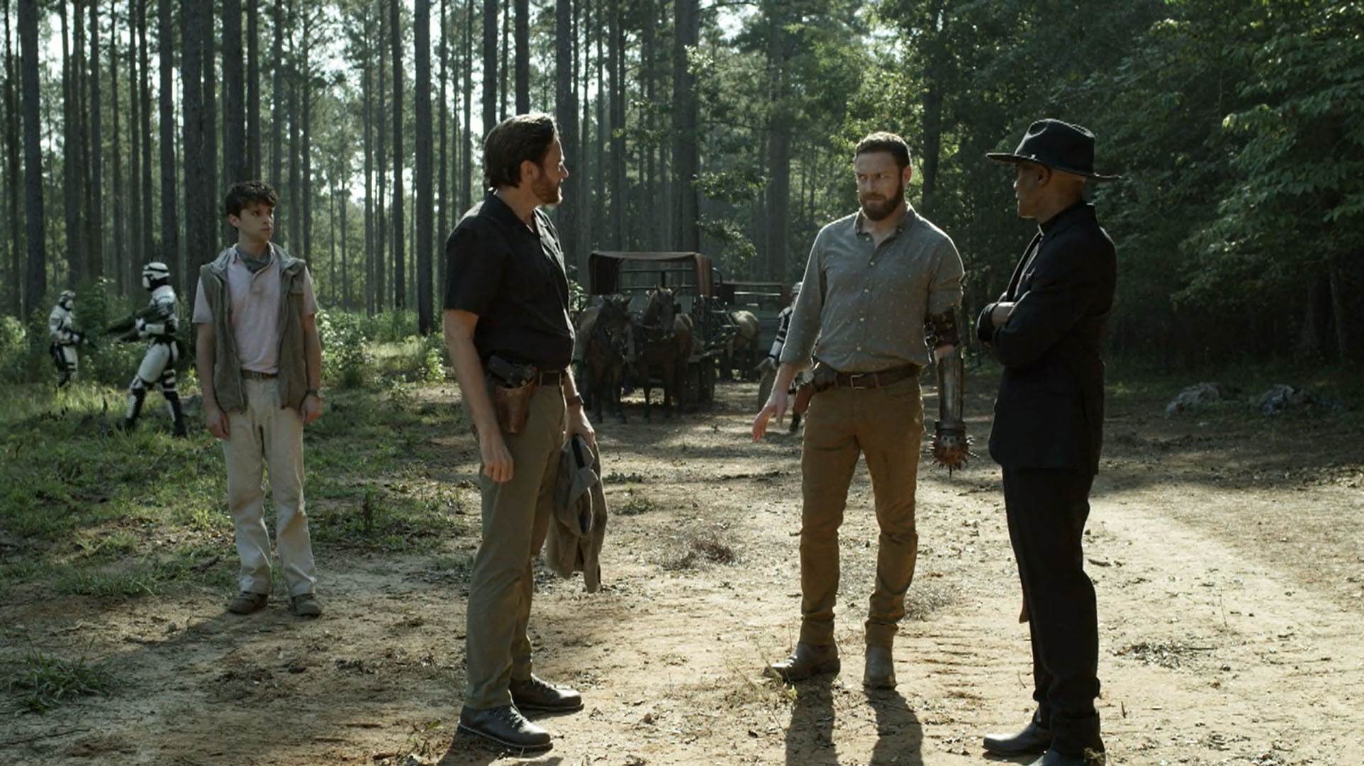 Comme les personnages ne savent pas qu’on approche de la fin de la série, ils tentent toutefois de convaincre cette nouvelle communauté qu’ils ont un système fonctionnel rappelant l’ancien monde. Le type en face d’eux, leader charismatique de ce groupe tout aussi charismatique, les trolle rapidement : il sait bien que Gabriel est prêtre, même s’il ne voulait pas l’avouer immédiatement, mais il suppose que si c’est l’ancien monde, il doit bien y avoir des prostituées et des jeux, des paris, tout le vice qu’il adore.