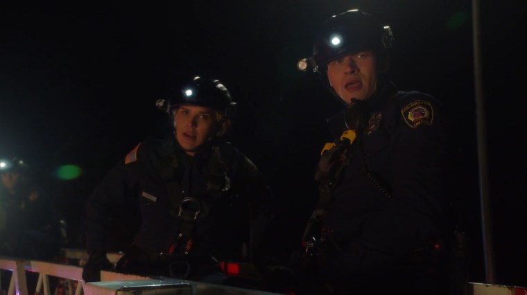 Bon, j’ai tendance à regarder les pédales avant de démarrer une voiture, alors ça me fait rire que le père de famille ne découvre ça que maintenant, mais le vrai point central de ce moment, c’est qu’Eddie décide d’utiliser les lignes du 9-1-1 pour parler à ses collègues pompiers. Josh n’approuve pas du tout cette situation – ça casse la chaîne de commandement, Eddie n’étant qu’un invité dans les locaux et n’ayant pas les autorisations pour parler sur cette ligne sécurisée.