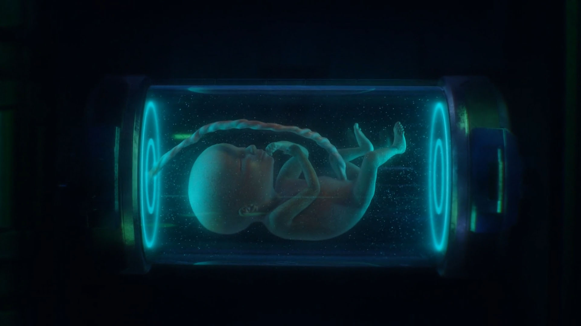 Harry et Bridget se rendent ensuite au point de rendez-vous fixé par les Gris, au beau milieu de la neige. Ils y trouvent effectivement un vaisseau qui semble prêt à les emmener loin de la Terre. Cela se fait avec la voix off d’Harry se rendant compte qu’il ne veut plus totalement manger son bébé. Il est même attaché à lui en théorie… Mais en pratique, il n’hésite pas à l’abandonner. Il laisse en effet ce bébé repartir dans l’espace avec le vaisseau des Gris, mais sans lui. C’est abusé comme les scénaristes se débarrassent vite du bébé, mais ça marche bien d’avoir Harry qui prend conscience qu’il a changé grâce à lui et qu’il peut donc réussir là où Goliath a échoué.