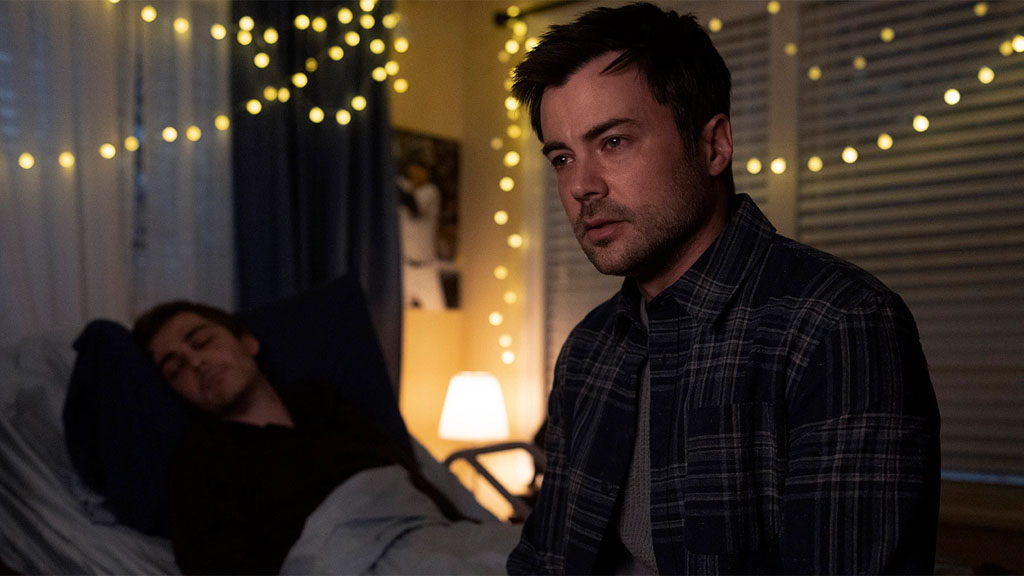 Bien sûr, l’épisode prend le temps d’une scène pour que Jared découvre son nouveau lieu de travail : c’est sympa de voir Drea l’accueillir et lui faire le tour du propriétaire – de même que c’est sympa de le voir devenir le collègue du flic qui lui a fait perdre son titre de détective à la base. Une fois que c’est fait, Jared envoie un message à Michaela – de nouveau à culpabiliser pour Evie – afin qu’elle vienne le voir à l’hôpital.