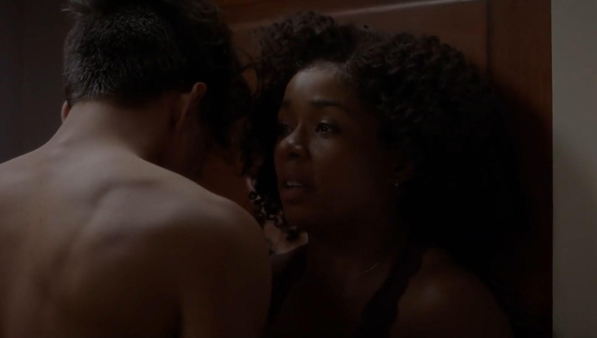 Il la suit dans sa chambre pour parler avec elle et pour lui faire la plus belle des déclarations, assurant qu’elle est parfaite même quand elle s’énerve. Il n’en faut pas beaucoup plus pour que Simone craque pour Lucas… C’est un peu bateau comme déclaration, mais elle est dans tous ses états Simone, après tout. La série va bien plus loin que parfois cependant : elle enchaîne sur une scène où Lucas et Simone sont clairement en plein préliminaires contre la porte de la chambre quand Trey débarque derrière la porte de la chambre.