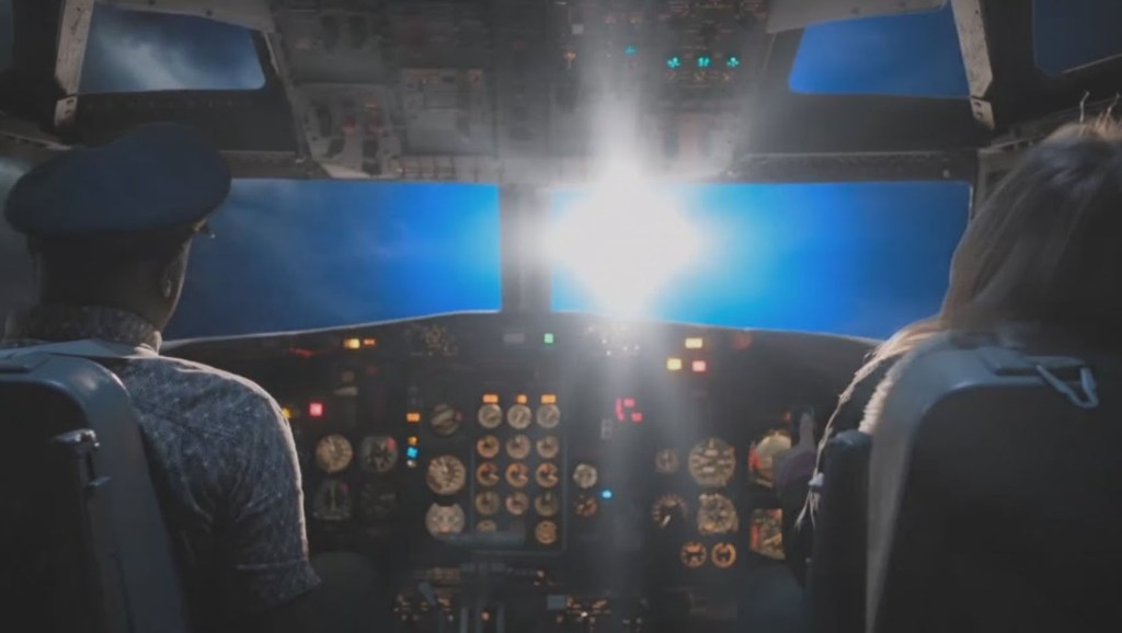 Cool. Cela semble simple. Le pilote appelle alors Michaela dans le cockpit pour qu’elle puisse l’aider à prendre une décision. Il voit en effet la lumière bleue qui les pourchassait cinq ans plus tôt, et il décide… de la pourchasser à son tour. Wow. Il est temps pour l’avion de foncer dans la jolie lumière blanche de la conscience divine. Que se serait-il passé si elle avait fait un choix différent ? Auraient-ils pu rentrer chez eux, dans ce monde-là ? On ne saura pas exactement.