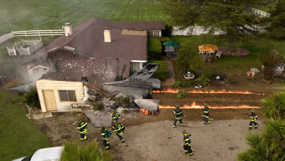 Athena a peur d’un bateau qui coule à la télévision et on enchaîne par une première catastrophe pour l’épisode qui consiste à voir un homme regarder un film avec des avions de guerre. Sans trop de surprise, un avion vient donc s’écraser dans sa maison. La surprise est atténuée par le fait que Maddie vient juste de recevoir un appel du pilote, forcé d’abandonner son avion suite à un problème de communication.