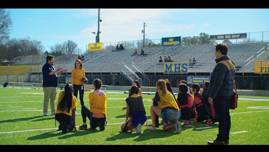 Le deuxième épisode étant déjà dispo, j’ai envie de me faire une idée de la suite. Un point positif est que le début de cet épisode, comme le précédent est survitaminé. Les choix musicaux sont parfaits, Evan en prof toujours en retard qui court dans tous les sens aussi. Il est interrompu rapidement par des étudiants qui demandent son aide avec le « Powderpuff », cette journée où les filles jouent au football et où les mecs s’habillent en cheerleaders. Soit.