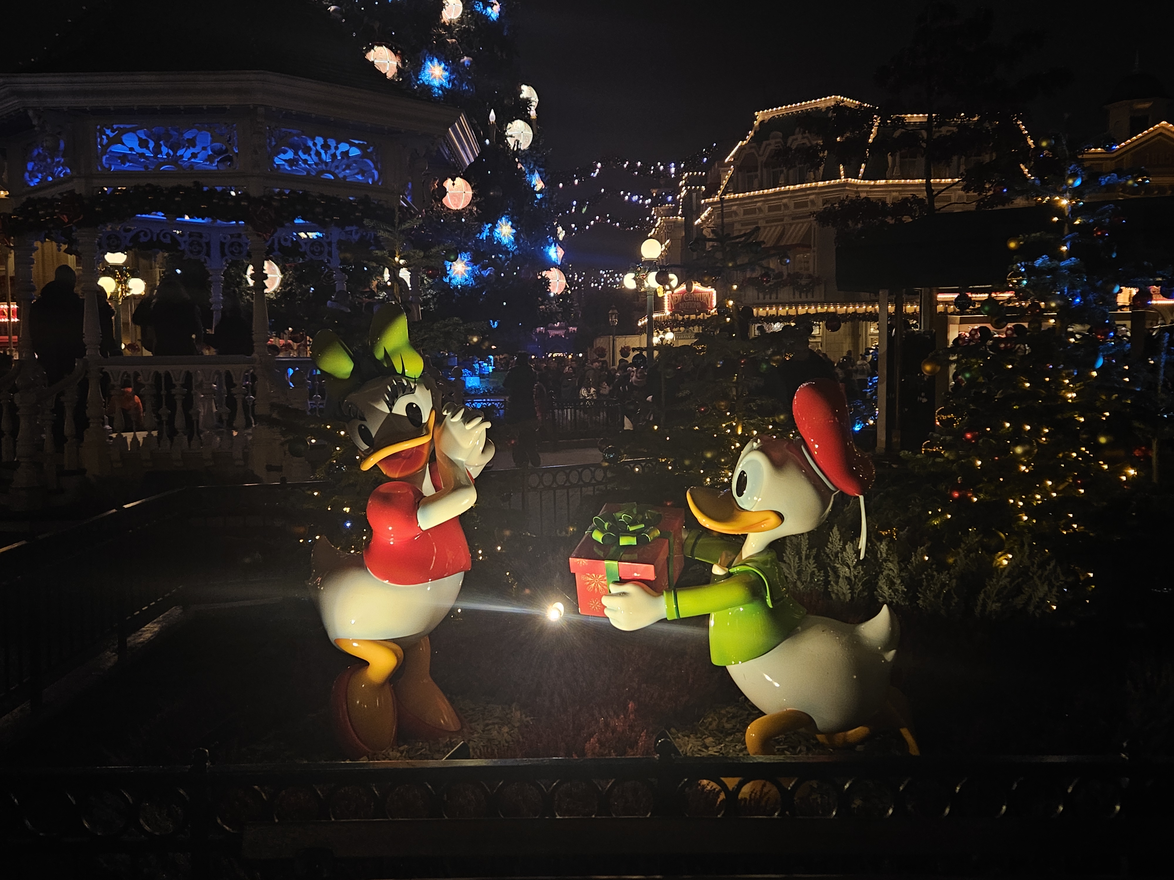 La vraie surprise de la soirée, cependant, c’était la piste de danse à Discoveryland. Sur le programme, c’est probablement le truc qui m’intéressait le moins parce que j’y voyais une sorte de discothèque et que ce n’est pas mon truc, mais aussi parce que je ne voyais pas le rapport avec Noël. Pourtant, la curiosité m’a poussé à aller voir (après deux tours de parc, je n’étais plus à quelques pas près). Finalement, j’ai été accueilli par une ambiance de boîte de nuit en plein air, des visiteurs qui se lâchent, et des personnages comme Dingo et Max qui se mêlent à la fête… C’était original, amusant, et ça a vraiment apporté une touche unique à la soirée : j’ai regretté de ne pas y être passé avant et de ne pas y avoir passé plus de temps, parce qu’au fond, c’est vraiment ce qui m’a le plus surpris et sorti de ma torpeur glacée.