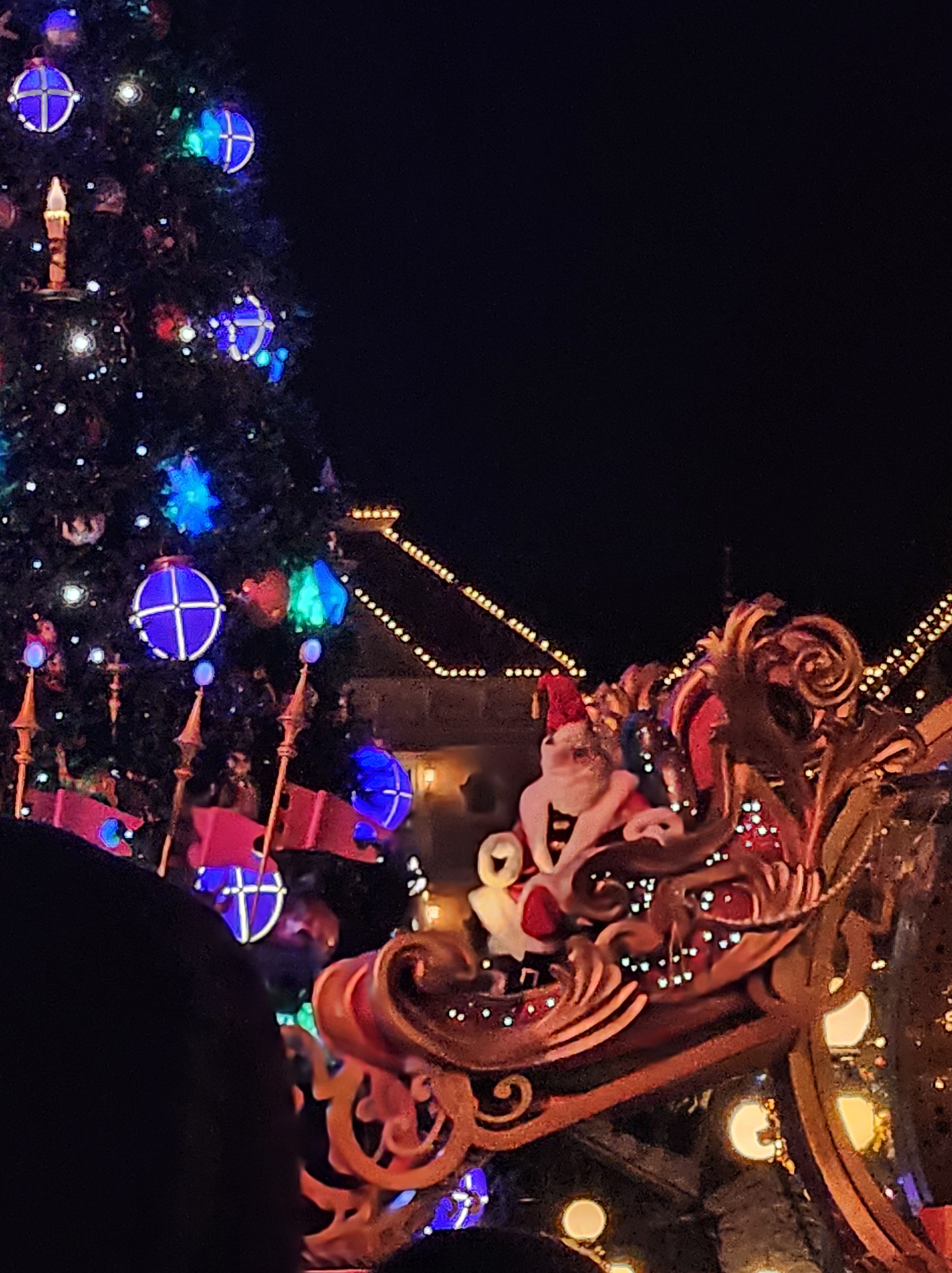 Malgré tout, il y a eu des moments où la magie Disney a pris le dessus, parce que ce genre de soirée, c’est aussi ce qu’on décide d’en faire. Déjà, c’est la base, mais les décorations de Noël étaient absolument sublimes, avec le gigantesque sapin illuminé sur Main Street et la neige artificielle qui tombait doucement. Rien que ça, c’était suffisant pour me replonger dans l’ambiance des fêtes et je n’en demandais pas forcément plus. J’avais déjà eu l’occasion de visiter le parc et de voir la parade de Noël dès le 9 novembre (c’est vraiment beaucoup trop tôt, mais j’y étais, écoutez, et faut bien dire que c’est magique comment ça met dans l’ambiance toutes ces décos lumineuses !), donc ce n’était pas une surprise. La neige était une nice touch en plus.