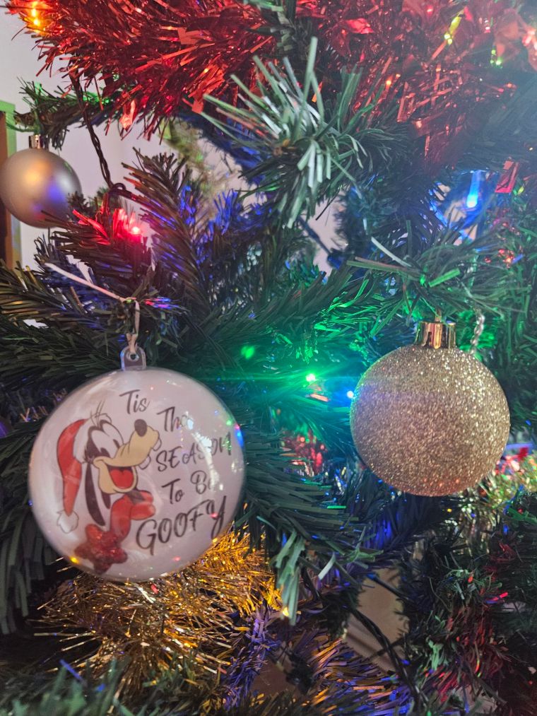 Une recherche Google, quelques fournitures basiques et un peu de récupération plus tard, j’ai pu fabriquer deux boules de Noël qui complètent parfaitement mon sapin. J’ai choisi Mickey et Dingo en mode Noël pour rester dans l’esprit festif.