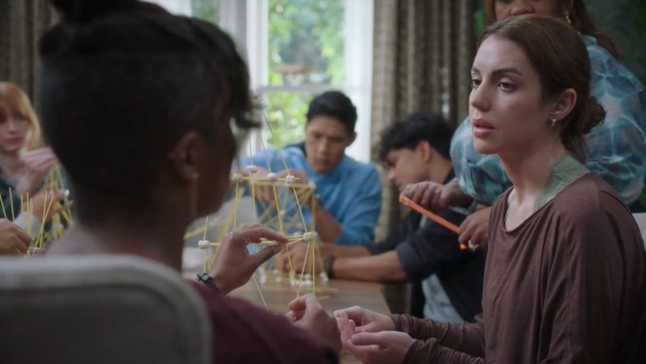 Ils enchaînent avec une construction en spaghettis que je suis heureux de n’avoir jamais eu à faire – parce que, oui, il paraît que ça se fait en formation de profs parfois, c’est un vrai truc. Bon, bien sûr, c’est une catastrophe pour les filles. Contre toute attente, Lucas et Kwan (pas du tout fan de ses baskets, wtf ?) s’entendent assez bien pour réussir en revanche. L’exercice suivant permet à Jules de péter un câble et de souligner que tout le monde fait comme si Mika n’était pas partie. Elle lui manque et elle le fait bien savoir, même aux figurants qui n’ont rien demandé. Et vous savez quoi ? Quand elle pète un câble et s’en prend un peu à Bailey, j’ai trouvé qu’elle ressemblait énormément à Izzie. Et c’est un compliment, évidemment.