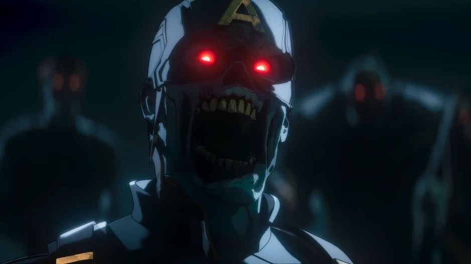 On nous multiplie les personnages, on nous explique qu’ils doivent envoyer le transmetteur dans l’espace, puis une horde de super méchants zombies débarque à proximité de la base. Ils sont envoyés par Wanda, qui est la Reine des Morts – et parmi eux, il y a Captain America zombie. Qu’est-ce que c’est que cette série ? Je passe tellement à côté, c’est triste. Je n’arrive pas à m’arrêter pour autant, et pourtant, rien ne va : même l’animation que j’aimais beaucoup dans What if me paraît super bizarre ici (les hordes de zombies en 2D, c’est non).