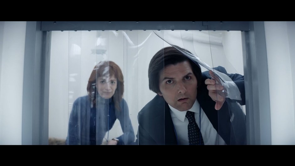 En parallèle, Milchick doit répondre de ses actions auprès de ses employeurs. Le conseil est désormais représenté par Nat, toujours, mais aussi par un homme barbu qui a parlé avec Helena en début d’épisode. Jusque-là, on le voyait plutôt comme un garde du corps, je trouve, mais il semble avoir une connaissance bien plus grande de l’entreprise. Il pousse Milchick à se rappeler de qui il supervise – parce que Mark est sur le point d’accomplir une action historique pour la planète. Rien que ça ?