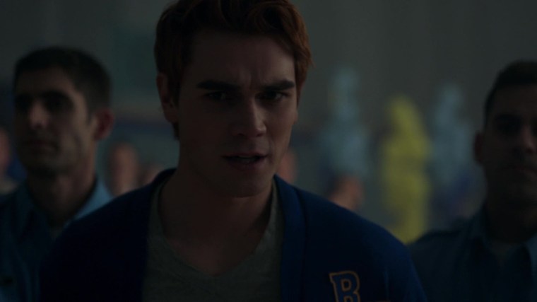 Pfiou. Archie profite de la fête pour envisager ce qu’il se passerait s’il devait finir en prison. Il fait donc quelques demandes à Betty et Reggie – lui aussi torse nu d’ailleurs, ça nous fait encore une scène où Archie se dénude, du coup. La fête est aussi l’occasion pour Veronica de regretter de ne pas avoir été à la barre et pour Josie de balancer des informations confidentielles.