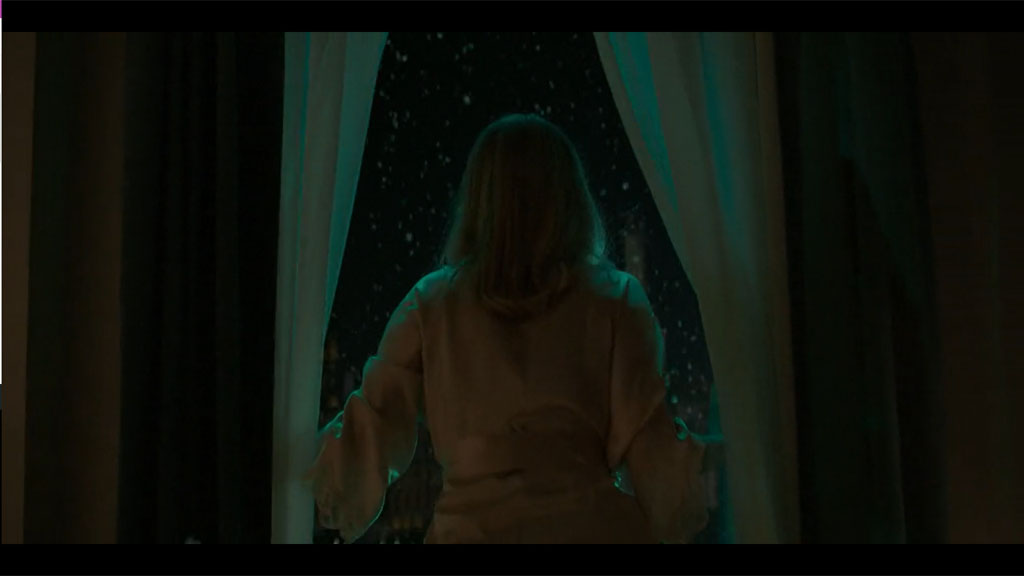 Elle s’en confie à Ginny quand elle monte à l’étage et qu’elle tombe sur elle. Ce qui est intéressant, c’est que la série a beau être mal montée quand il est question des figurants dans la rue, la production fait attention à d’autres éléments un peu plus crédibles. Ainsi, Elena se retrouve avec de sacrés cernes quand elle parle avec Ginny de ses cauchemars.