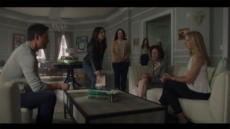 En attendant, Tory rentre dans un appartement impeccable, mais râle tout de même de voir sa bougie parfumée allumée, alors qu’elle est uniquement là pour être vue, en théorie. En pratique, Kim pensait bien faire en l’allumant pour cacher les odeurs de drogue – non parce que tout le monde s’est drogué, clairement, quand on voit l’attitude d’Elliott. Sinon, il ne faut pas oublier non plus un échange entre D’Arcy et Elena, à propos du père un peu trop dragueur de la première.