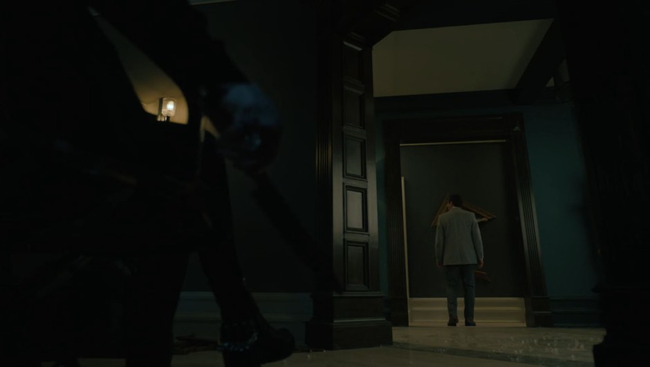 Andrea est ainsi présente pour entendre plus qu’elle ne le devrait quand Dominick, la liaison avec l’Entité, débarque pour tout raconter à David. On apprend ainsi que Leland est capable de prendre contrôle de David parce qu’il a du talent, exactement comme David. En fait, il a même été formé par Dominick lui-même, parce que Leland a essayé de devenir prêtre pendant dix ans. C’est… Wow. Des réponses auxquelles je ne m’attendais pas et qui mènent à la conclusion, formulée explicitement par Andrea, qu’il faut tuer Leland pour s’assurer qu’il ne prenne jamais contrôle de David.