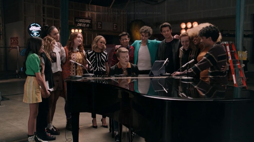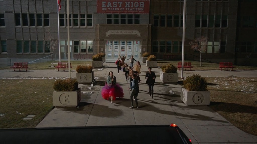 Mais c’est que les scénaristes ont une dernière pirouette à révéler : Quinn a demandé à Gina d’être audacieuse et de faire les gros titres ? Elle le fait : Gina la remercie d’avoir accepté de tourner le film à Salt Lake City pour lui permettre de finir son lycée. AHAHA. Beau move de la part des scénaristes. Cela n’existe pas tellement en vrai, mais Quinn se retrouve forcée de faire son film à Salt Lake City, surtout après le numéro des lycéens. J’adore l’idée. C’est ce qui motive Miss Jenn à rester aussi à East High et c’est ce qui permet une jolie conclusion de la part de Ricky : il avait enfin raison d’être en retard.