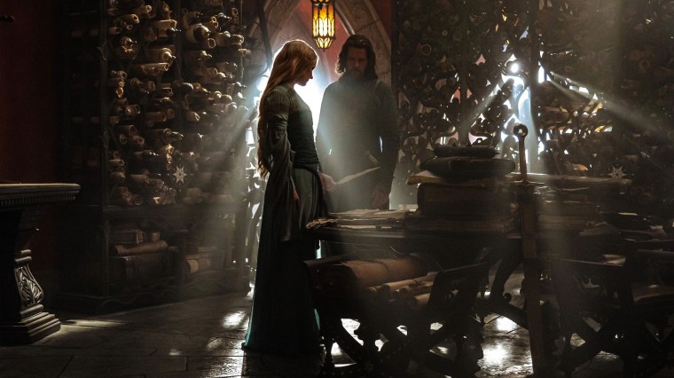 Celebrimbor est énervé de se faire congédier alors il tente le tout pour le tout, parlant des pouvoirs que la pierre pourrait conférer. C’est bien mignon, mais les mots qu’il utilise ne sont pas anodins et Galadriel le sait bien : un pouvoir qui vient d’un monde invisible ? Un pouvoir sur la chair ? Il parle comme Sauron, et ça inquiète Galadriel. Elle perd ainsi toute confiance en Halbrand, le soupçonnant d’être celui qui manigance tout dans l’ombre.