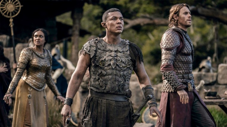 Cela prend bien beaucoup de temps, et ça en laisse assez pour qu’Elrond fasse 1+1 et comprenne la vraie identité d’Halbrand, retrouvant l’arbre généalogique dans le fleuve. Il ne confronte même pas Galadriel, cependant : quand il vient la voir, les trois anneaux des elfes sont enfin prêts à être portés. Bon, les trois personnages ne ressemblent pas tellement aux acteurs vus dans l’introduction de la trilogie, mais on sait bien que ce sont eux qui les porteront.