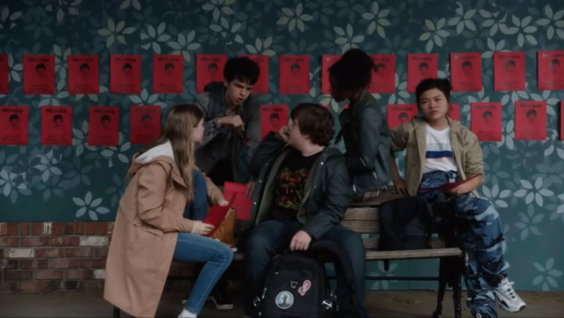 A la demande des adolescents, le clown retire ses lunettes noires… et il a des yeux, évidemment. Cela n’empêche pas le moment d’être creepy, surtout que Rachel lui demande s’il a vu Adam en lui présentant une de ses affiches. Et c’est là qu’elle découvre alors que toutes les affiches ont disparu. Enfin… Elle n’a plus que des feuilles rouges, mais l’encre n’est plus là, évidemment, puisqu’elle a coulé. Dur.