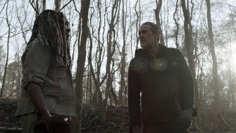 Le montage final donne aussi l’impression de retrouvailles entre Rick et Michonne devant un feu. Pourtant, nous les retrouvons chacun au petit matin à se préparer comme ils peuvent. Rick est pieds nus et a peur d’être repéré par un hélicoptère. Il l’est pourtant, mais Michonne semble l’avoir entendu ? Ce n’est pas le cas.