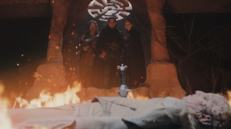 En attendant, Zed finit par se motiver à bouger et aller s’occuper un peu de Munt. J’en avais presque oublié qu’il était quasiment mort lui. Il a encore assez de force pour être secouru et mentir à Zed, affirmant que Nedra a dit qu’elle l’aimait avant de s’enfuir avec le kinj. Ce n’est pas exactement ce qu’elle a dit, m’enfin, Munt a raison : c’est bien ce qu’elle comptait dire et on le sait tous. Zed aussi. Mais Zed ne veut pas le savoir, pas le jour de sa mort.