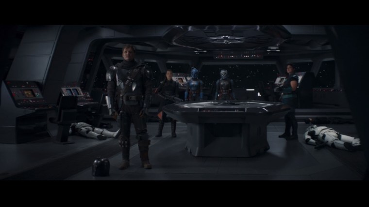 Le plan mis en place est assez simple : Bo-Katan, son bras-droit, Cara et Fennec pénètrent sans trop de mal dans le vaisseau de Gideon en prétextant être de sa flotte et être attaquées par un vaisseau ennemi, piloté par Boba Fett. Le Mandalorian ? Il est planqué dans le vaisseau des femmes. Celles-ci débarquent dans le hangar d’atterrissage où elles ont posé sans permission le vaisseau pour mieux s’attaquer aux Storm Troopers.