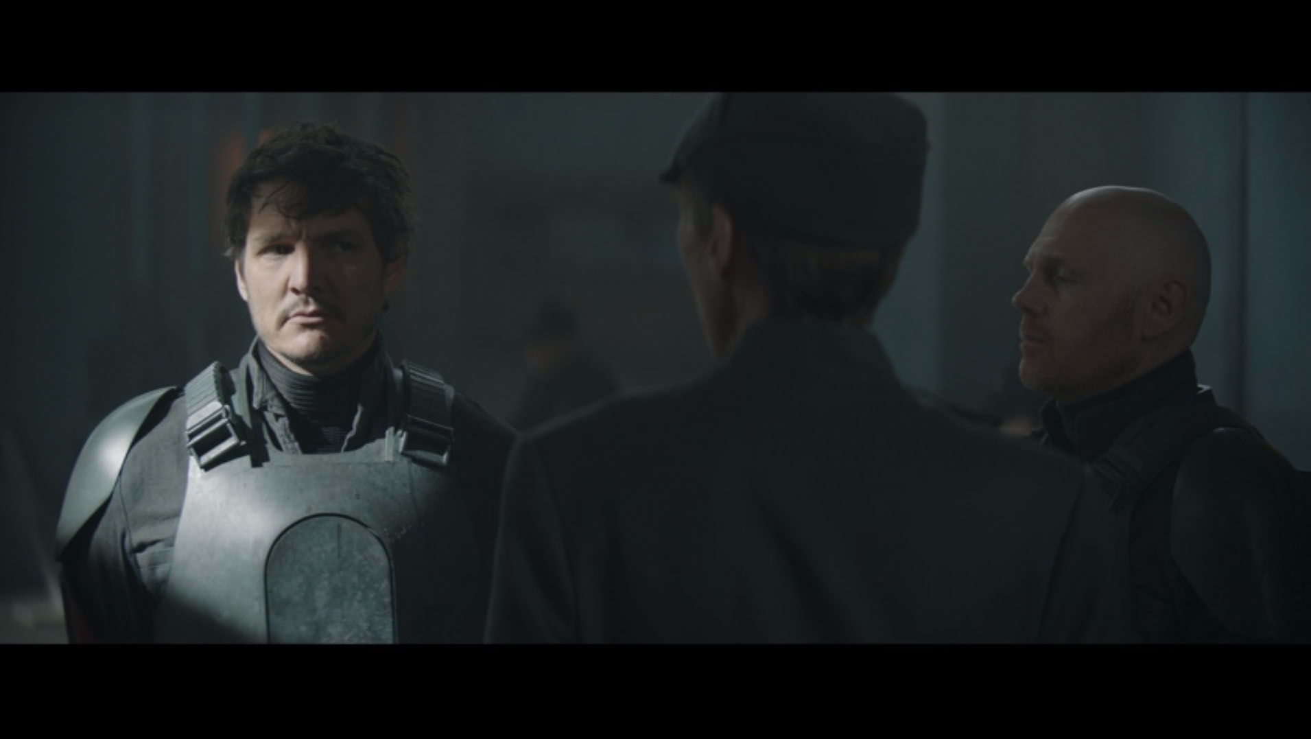 En effet, les coordonnées ne lui seront données qu’avec un scan facial. Malgré cette information qu’il a dès le départ, il décide de lancer le scanner avec son casque de Stormtrooper. Il attire beaucoup trop l’attention du fameux commandant qui décide aussitôt de l’interroger. Par chance, Mayfeld décide de sauver Mando ! Leur alliance est au moins aussi improbable que le fait de voir le visage de Mando, mais c’est pourtant bien ce qu’il se passe. Mando n’a d’autres choix que de montrer son visage, à la fois au commandant, mais aussi à Valin Hess, le commandant qui faisait peur à Mayfeld.
