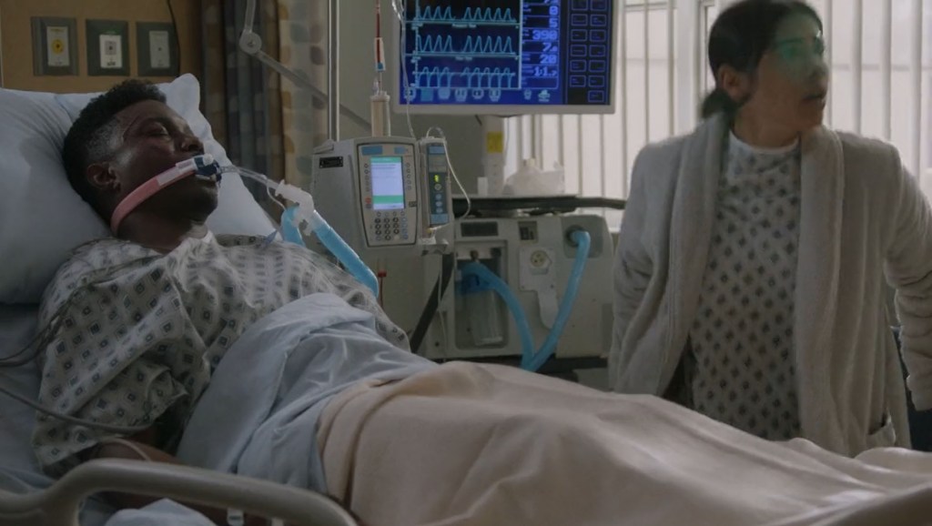 – Comment ça vous torturez encore Angela ? Ces scénaristes sont atroces : elle perd les eaux, mais passe son épisode à s’inquiéter pour Aaron parce qu’elle le voit arriver aux urgences. Elle passe le reste de l’épisode à tenter d’enquêter depuis son lit d’hôpital avec en plus la femme de Grey, c’est un peu abusé.